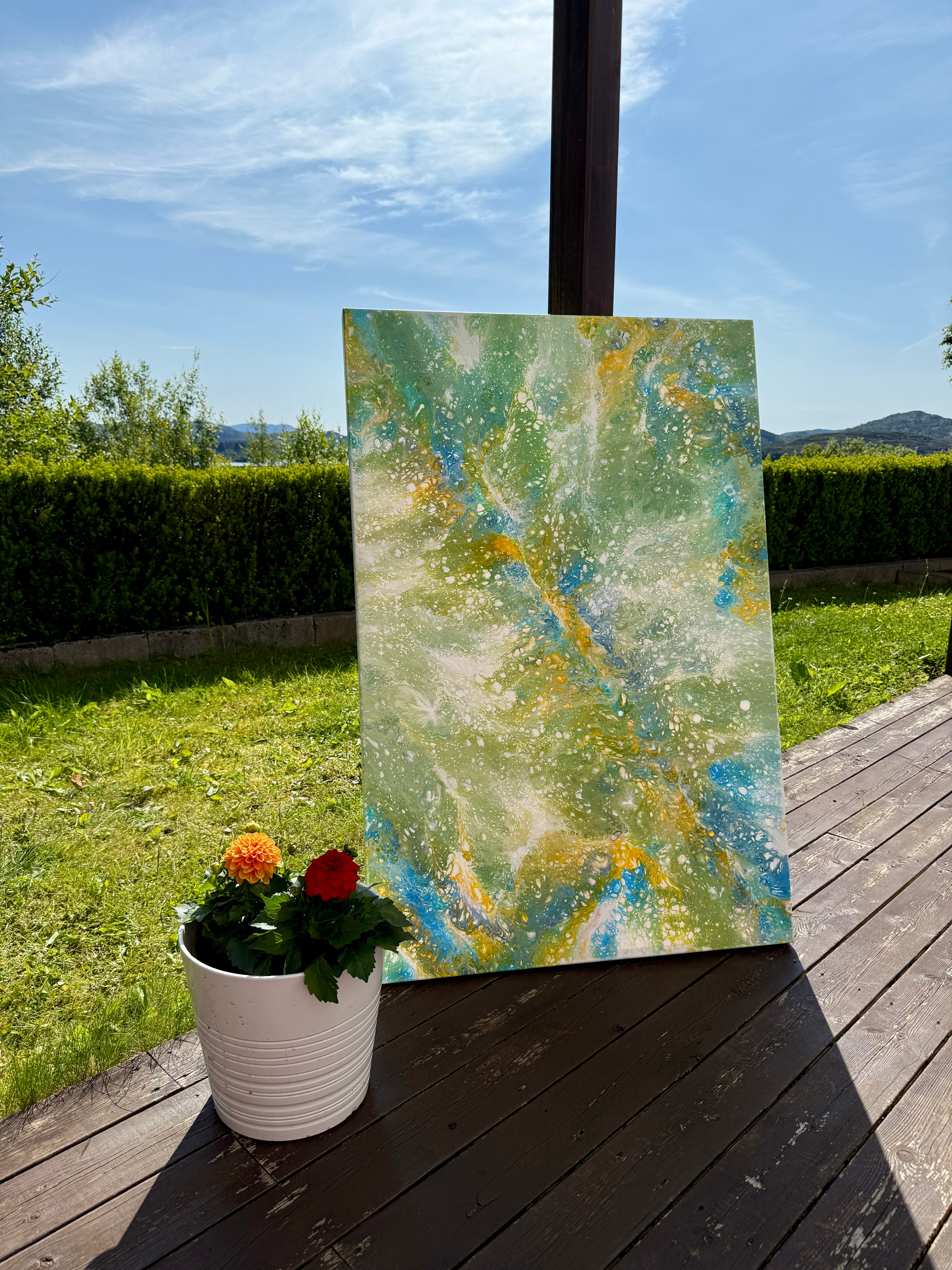 Hos Studio Schöppis bestiller du ikke et ferdig maleri – du får et verk skreddersydd til deg. Sammen finner vi design, størrelse og farger som passer perfekt til hjemmet ditt, slik at resultatet blir helt unikt og personlig.