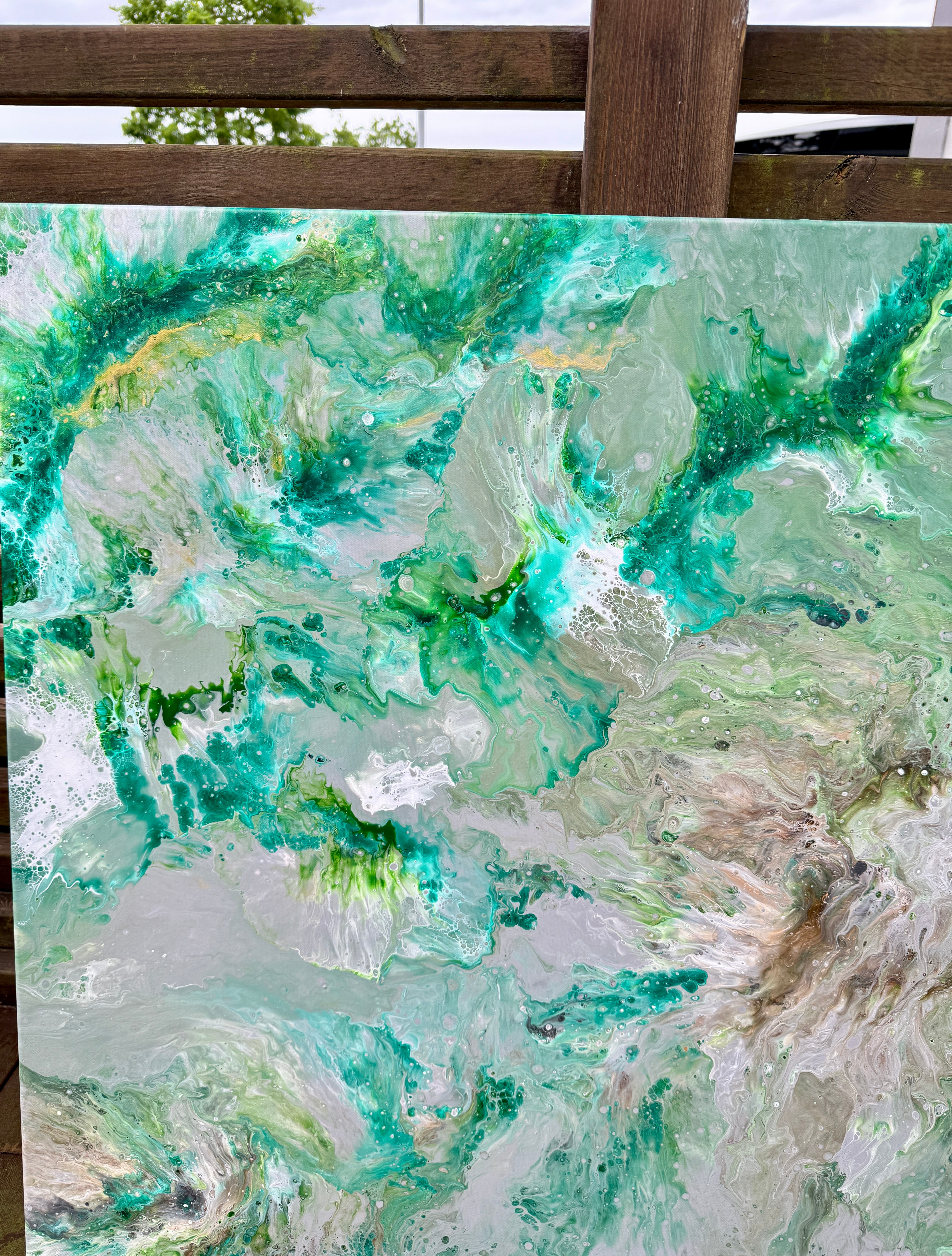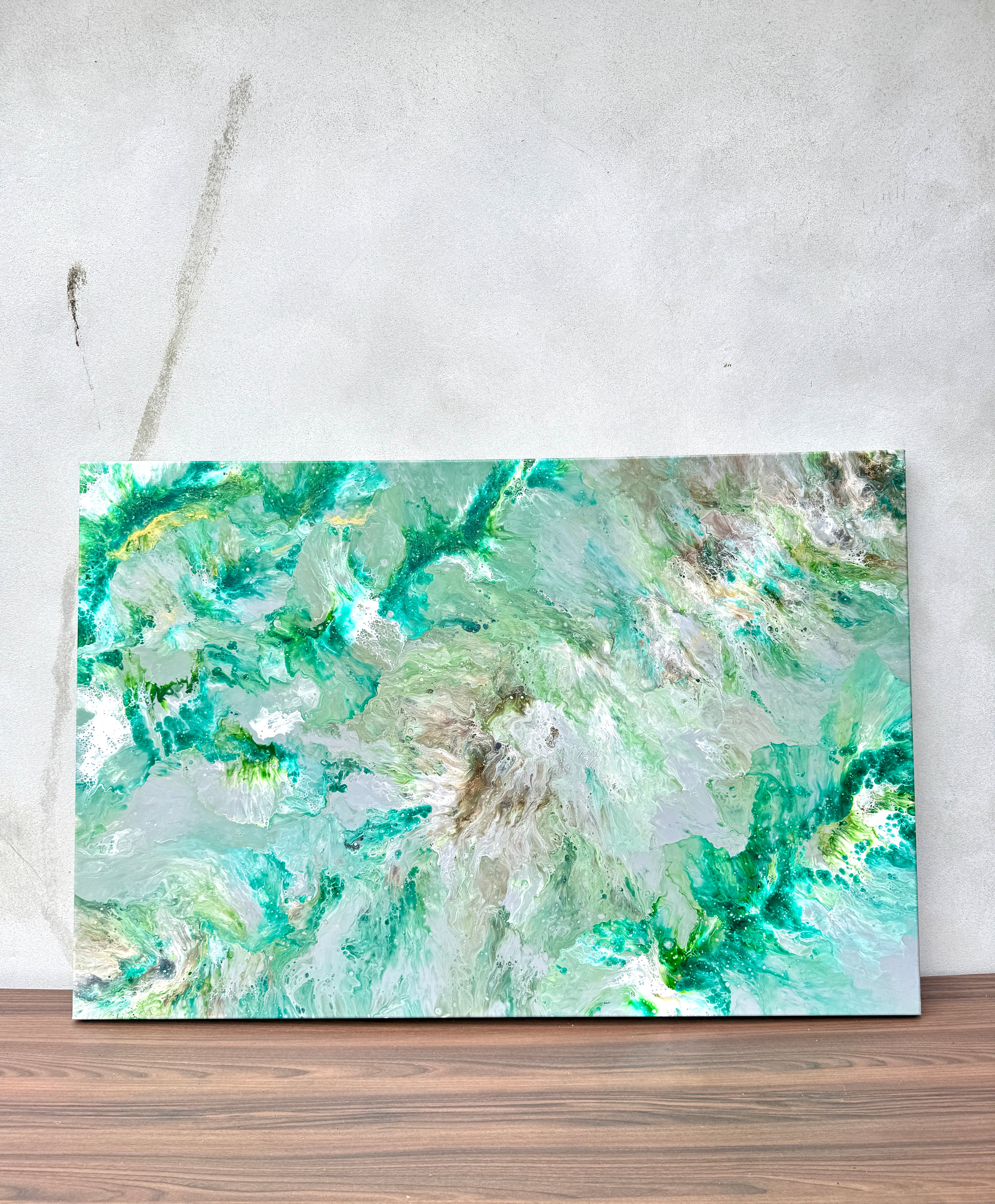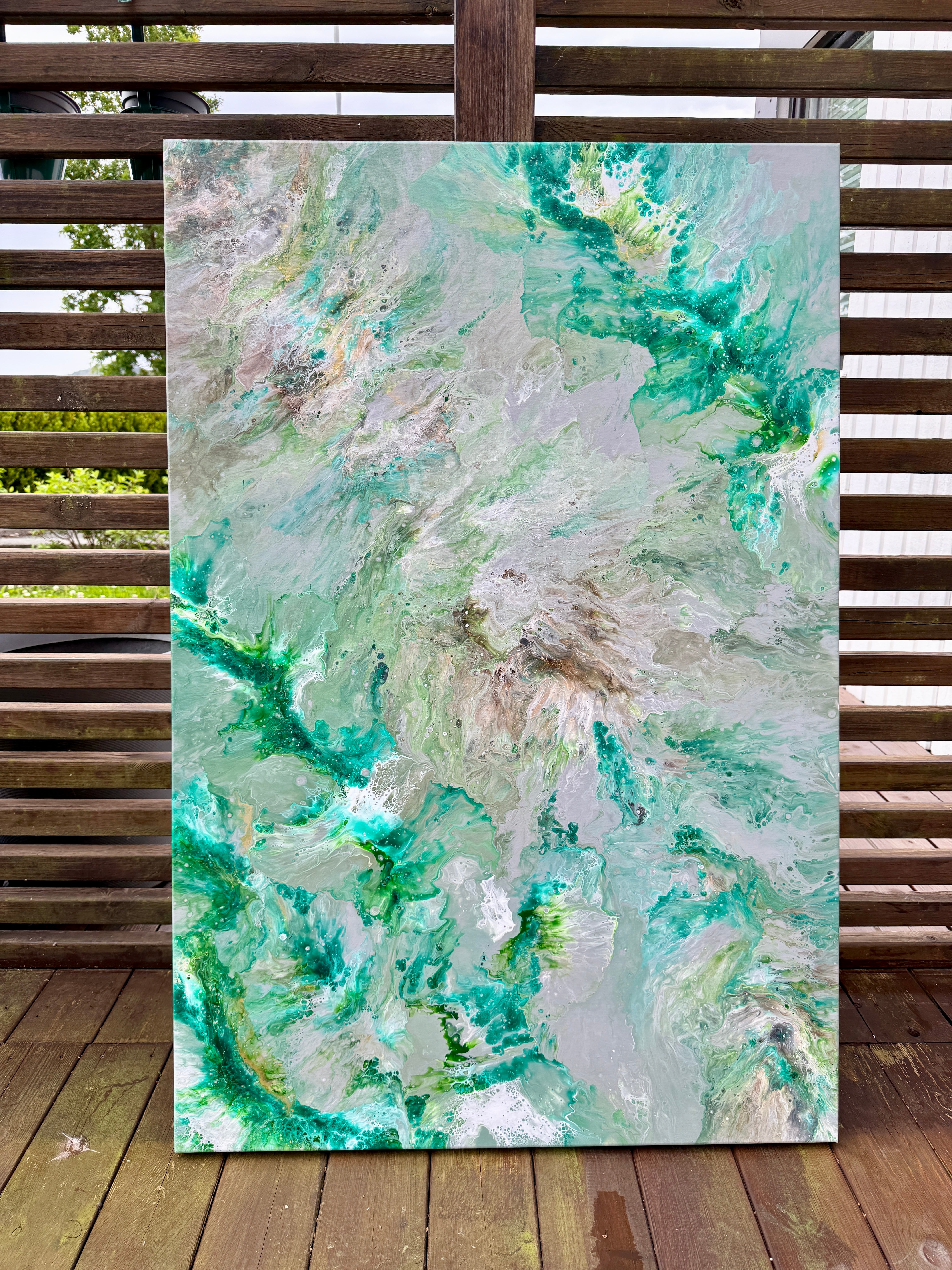 «Skognes pust» er et orginalt maleri malt med pour painting teknikken.