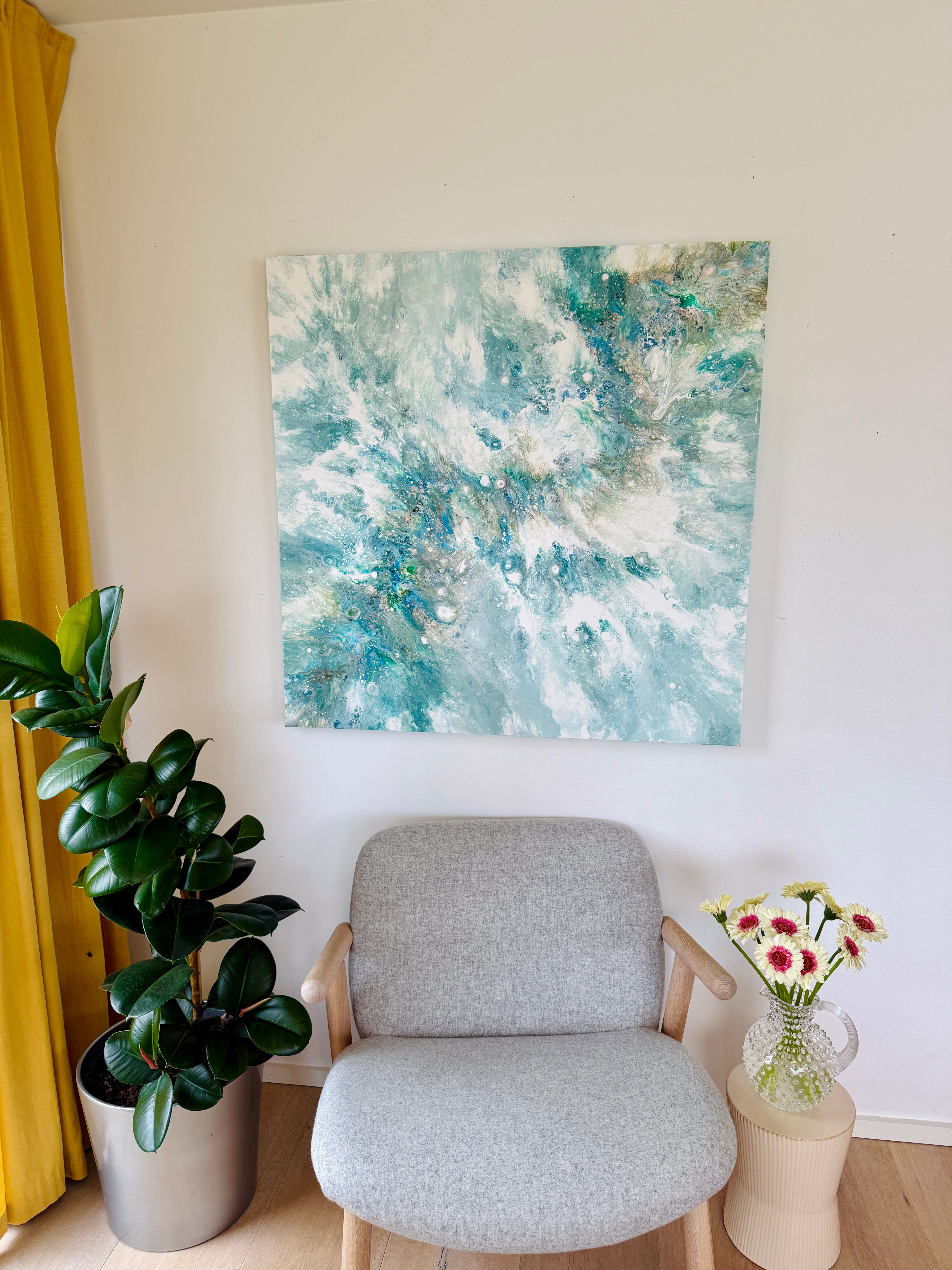 Hos Studio Schöppis bestiller du ikke et ferdig maleri – du får et verk skreddersydd til deg. Sammen finner vi design, størrelse og farger som passer perfekt til hjemmet ditt, slik at resultatet blir helt unikt og personlig.