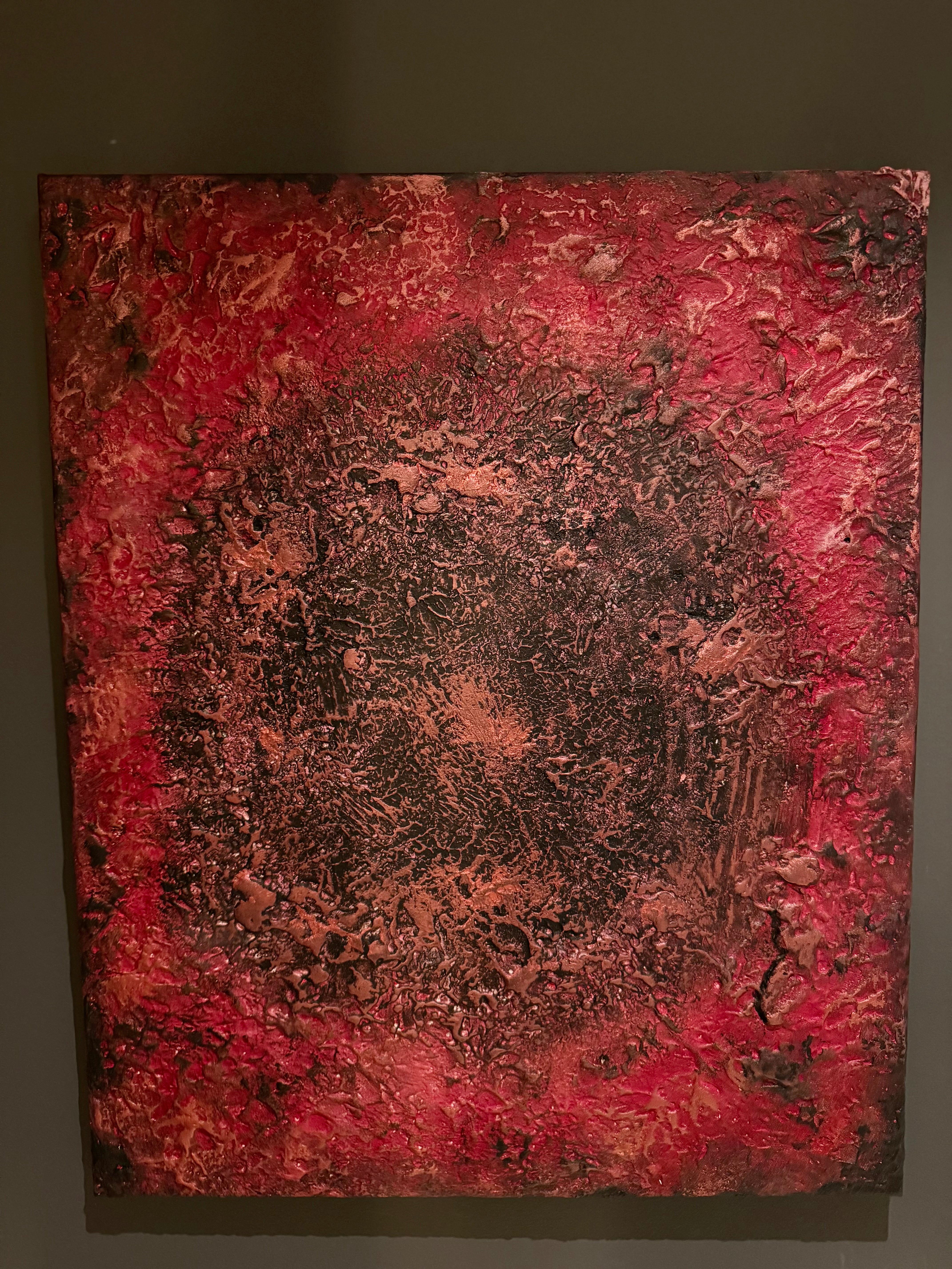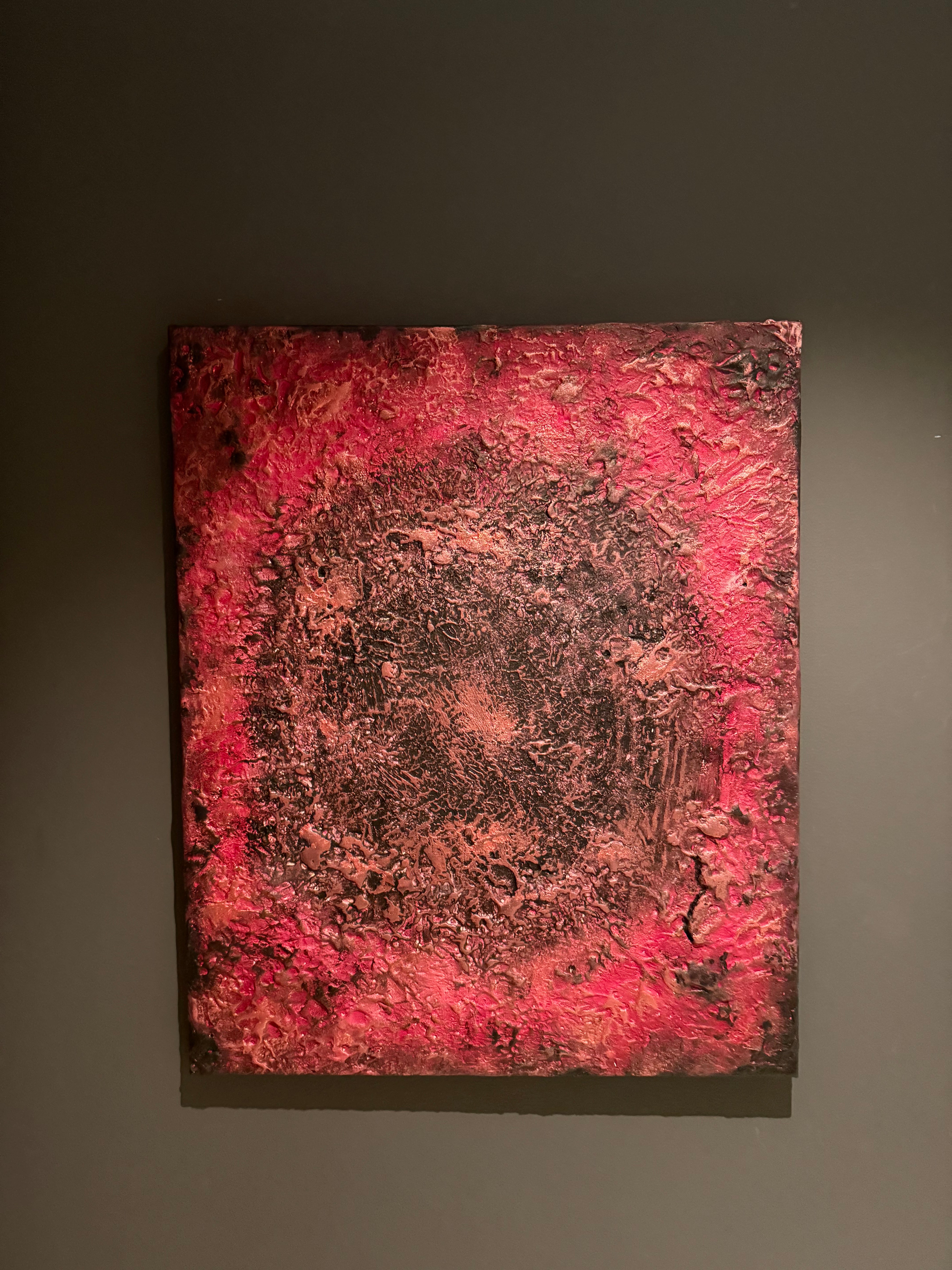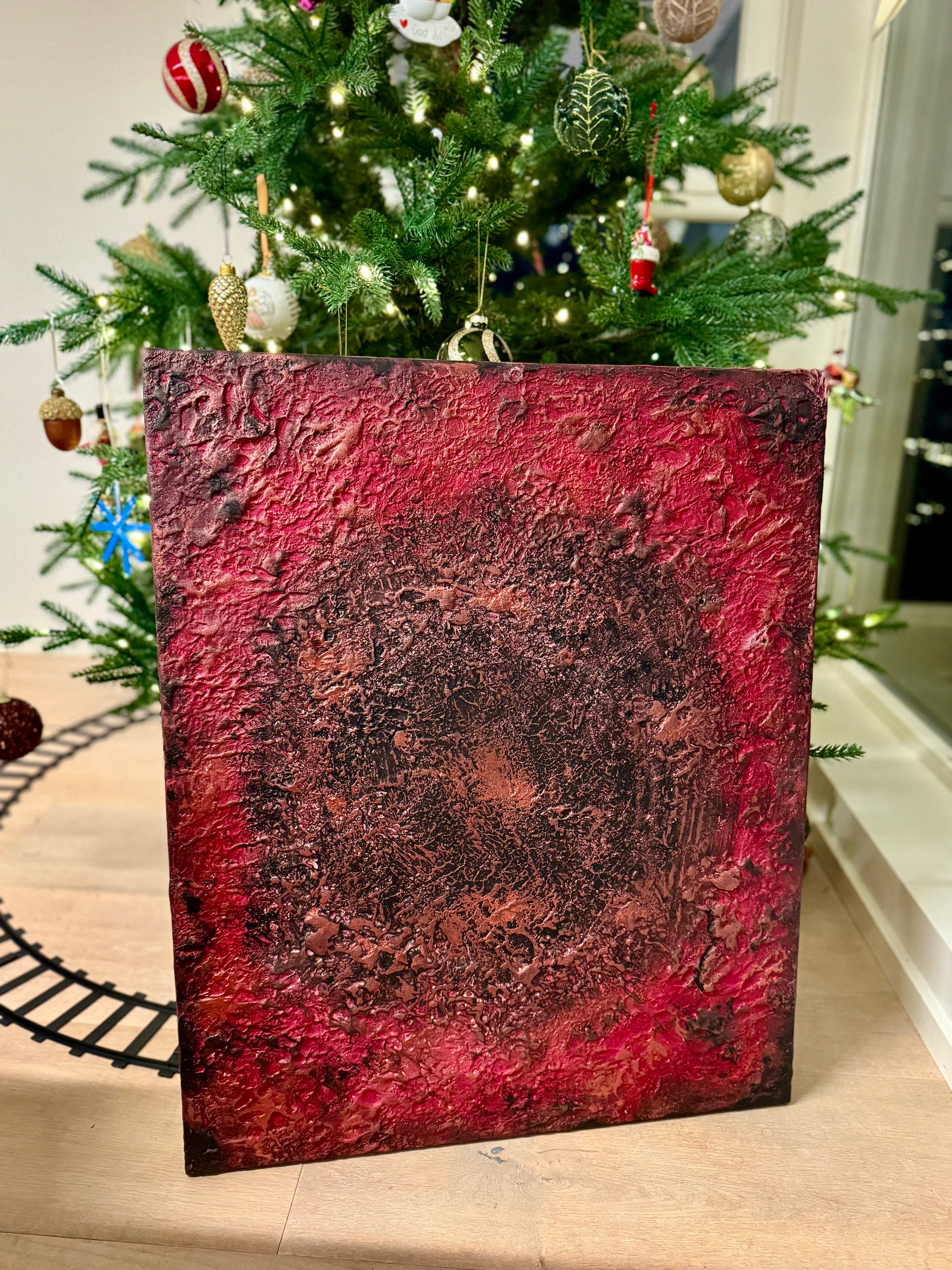 De dype røde tonene og den mørke kjernen skaper en intens, nesten pulserende energi. Flere beskriver verket som en portal, et punkt der noe bryter gjennom, eller et møte mellom to verdener.