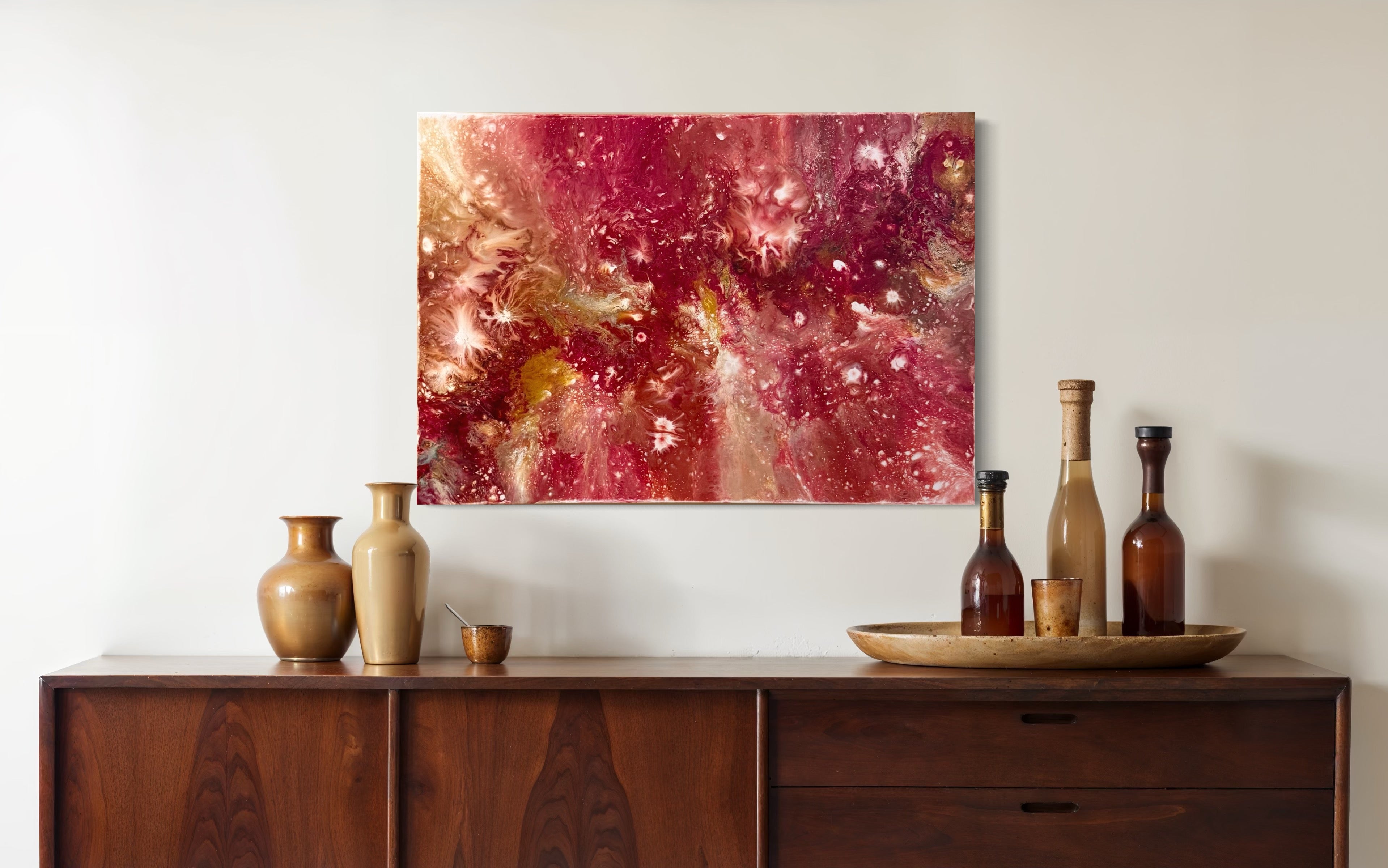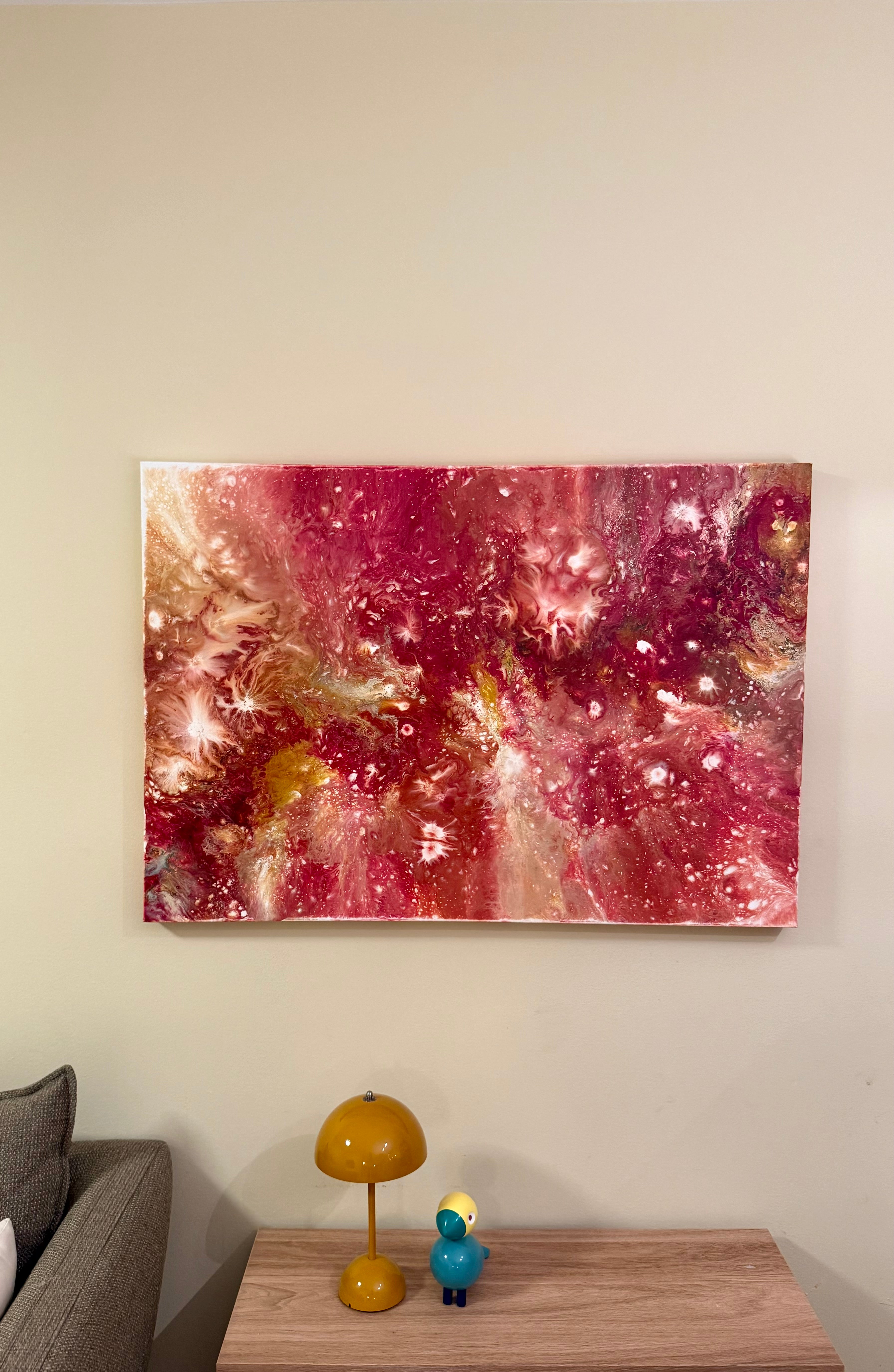 «Puls» er et Orginalt maleri i str 70x100 cm. Malt med pour painting teknikken.